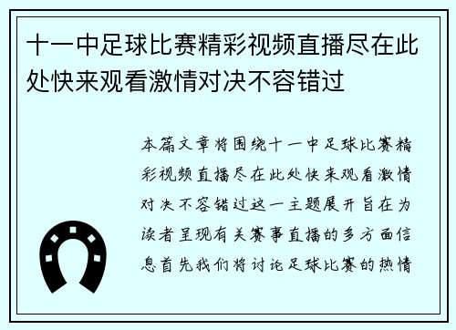 十一中足球比赛精彩视频直播尽在此处快来观看激情对决不容错过